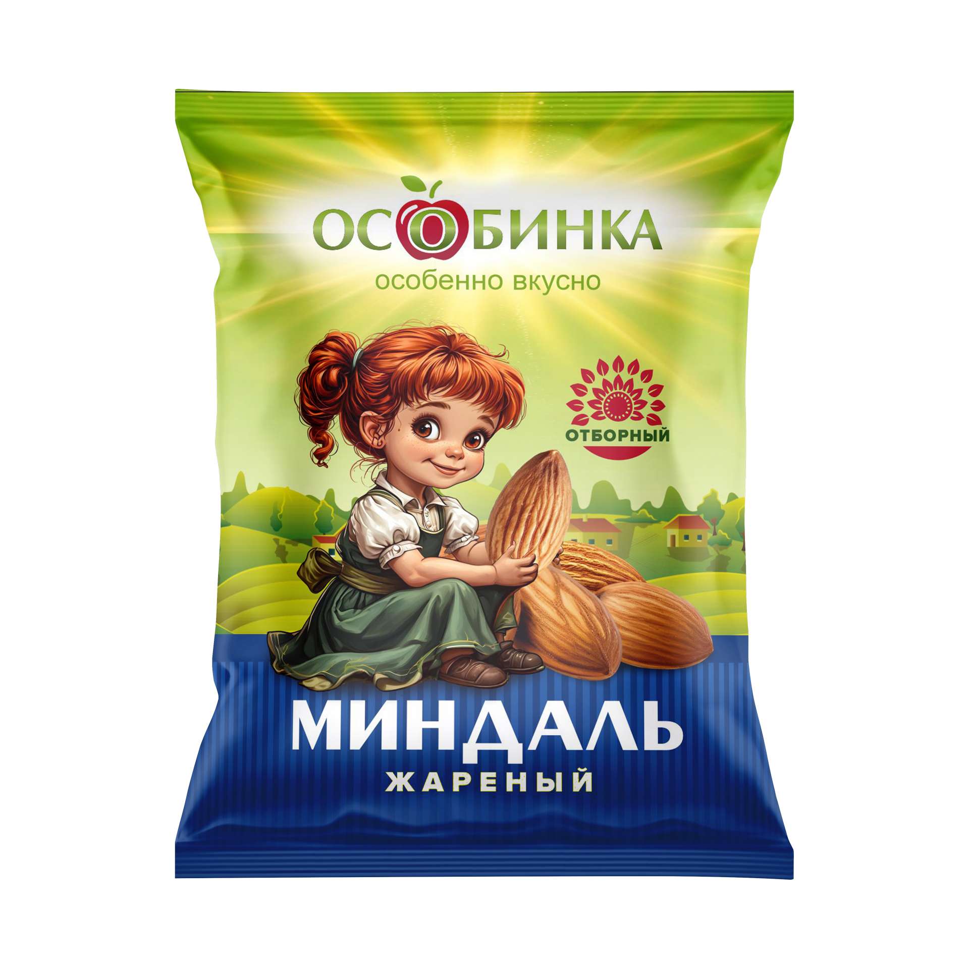 Товарный знак в аренду - это ваша возможность через пару месяцев уже производить любую продукцию на своих или чужих мощностях. Аренда товарного знака ОСОБИНКА дает вашему бизнесу преимущества в скорости начала работы, запоминаемости товарного знака и высокому уровню доверия к нему со стороны потребителей. Он простой, располагающий и естественный, что не позволит затеряться на полке магазина. Для вашего предприятия аренда товарного знака ОСОБЮИНКА - это отличная возможность расширить дистрибуцию, увеличить оборот и прибыль. Оцените вариант дизайна упаковки товарного знака ОСОБИНКА для фасованного миндаля. Вот так может выглядеть продукция вашего предприятия под нашим товарным знаком уже завтра. Наш товарный знак - ваша прибыль! Присоединяйтесь!